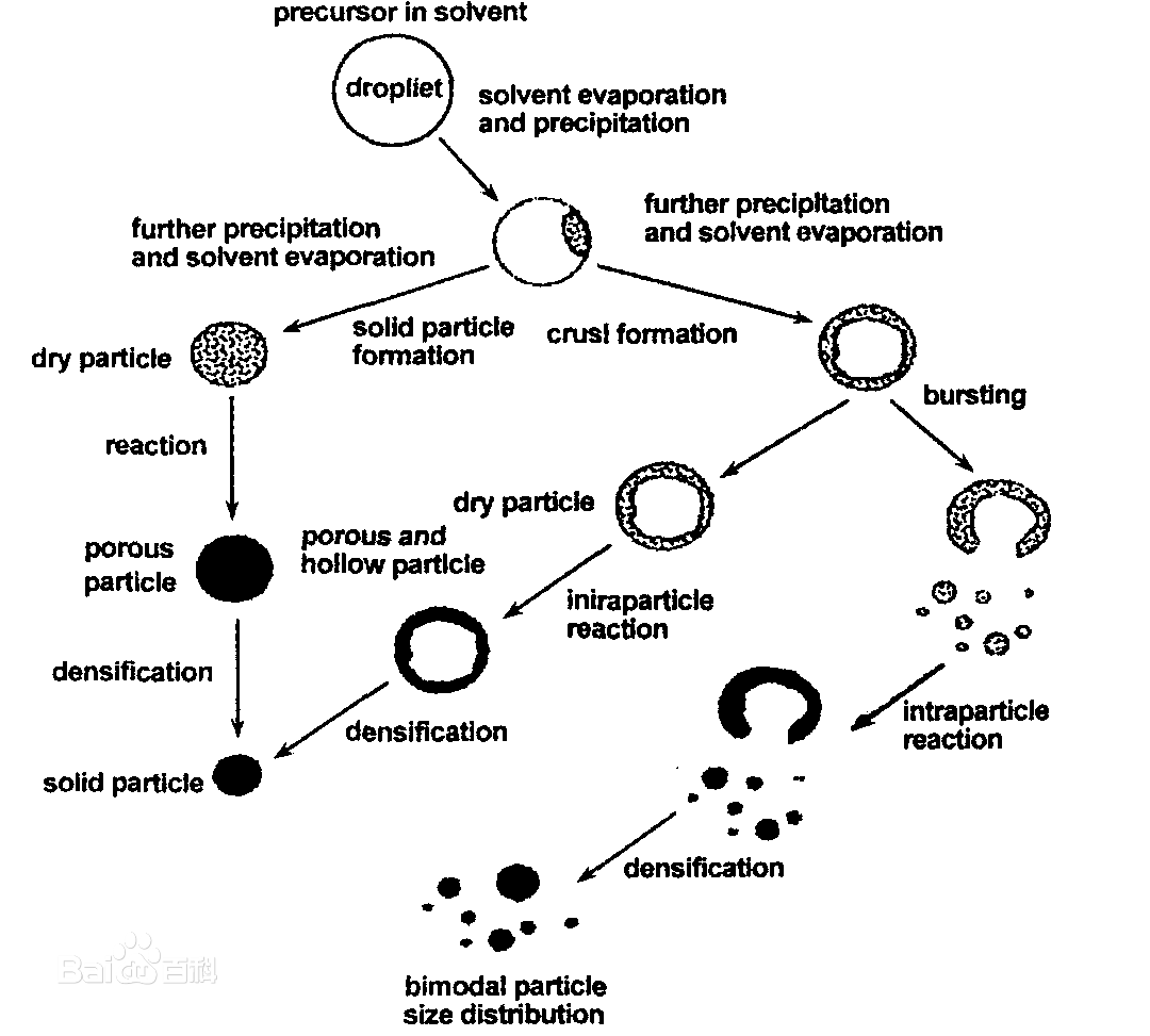 噴霧熱分解實際是個氣溶膠過程,屬氣相法的范疇,但與一般的氣溶膠過程不同的是它是以液相溶液作為前驅(qū)體,因此兼