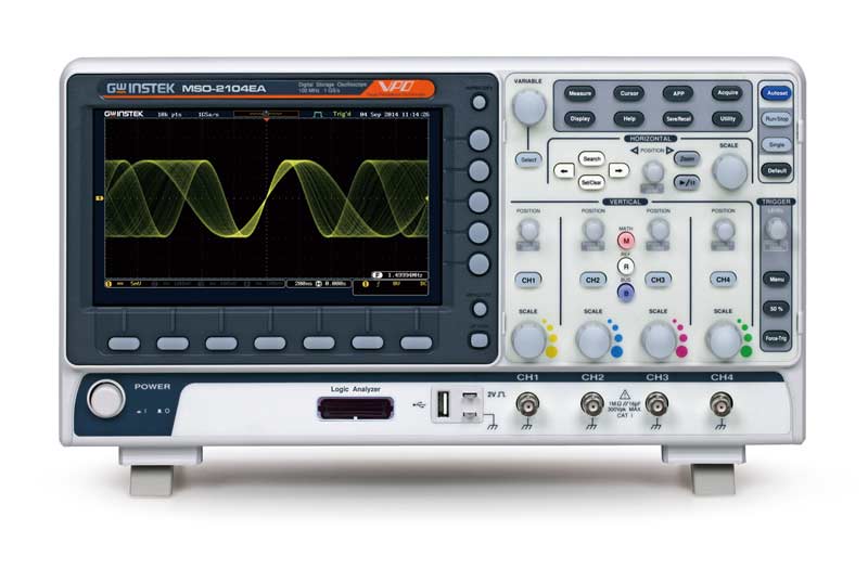 MSO-2104EA 100MHz , 4通道,混合信號示波器,含16 通道邏輯分析儀與雙通道25MHz 任意波形產(chǎn)生器