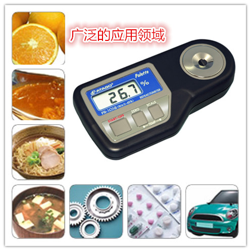 PR-201α 適用于測(cè)量果汁,食品,飲料及水溶性切削油,清洗液,冷凍液等工業(yè)用液體,各種藥品的濃度。其還可以測(cè)試濃度比較高的濃縮果汁,果醬以及工業(yè)潤滑油。此系列可設(shè)置客戶專用刻度,客戶自己預(yù)設(shè)系數(shù) [濃度=Brix x 系數(shù) ]就可直讀此樣品的濃度,還采用新功能ELI可防止強(qiáng)烈外光下的誤測(cè)量,外邊測(cè)量也可以得到穩(wěn)定測(cè)量結(jié)果。